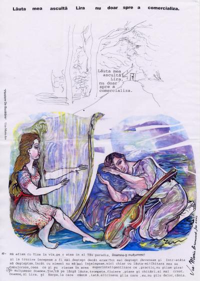 | Oboseala imi plange de durere si atunci ucid lumina lampii, adormind pe coatele inconjurate de cartile de pe masa pazite agale de fumul de tigara. Peste un timp ma trezesc ametit de somn din cauza unui sunet ciudat si putin ascutit. Il ascult ...prin bezna linistita aprizandu-mi o tigara ! Ma ridic de pe scaun si-mi misc greoi corpul la fereastra deschisa. Scot tigara din gura apoi eliberez si fumul ei, perdeaua din matase albastra este usor deranjata de degetele mele pentru a vedea de unde provine sunetul. O umbra de om, intors cu spatele, sta in picioare pe un colt de tomberon si canta atat de frumos la vioara. Am uitat de somn si-i privesc inclinarile corpului, multa vreme...uitand si de tigara din scrumiera, parca si ea bucuroasa de acest sunet. E inconjurat de gunoaie, de cainii calmi, apoi de oamenii incantati. Fiind vrajit de expozitia sunetelor donate cu usurinta sufleteasca prin vioara, hotarasc sa merg afara pentru a fi mai aproape de el si mai vrajit. Cand ajung jos gasesc atat de multi oameni atrasi de talentul lui iar luminile blocurile incep sa se inmulteasca in plina curiozitate. Intru in multime fara sa aud un zgomot uman si-l recunosc pe violonistul noptii care e admirat si de luna plina : e un cersetor iar ultima data l-am vazut acum patru ani, langa statuia de la catedrala asteptand bani de la trecatori. Toti cei de aici n-eam pierdut multa vreme in scara vibratiilor interioare ...muzicale. Aceste seri de vara calma s-au repetat timp de cateva saptamani. Ma culcam linistit stiind ca ma voi trezi pentru foamea sufletului, cateodata chiar il asteptam cuminti, ca multi altii si venea totdeauna dupa ora unu noaptea. Nimeni nu putea sa-i faca vre-un rau pentru ca era un Orfeu al viorii. El vrajea lumea deoarece avea cum sa-si expuna prin sunete, inima ! Lui Marin, asa-l chema, i s-a instalat o scena, dar tot pe tomberonul atat de simbolic pentru el canta ; a inceput sa fie inregistrat si apreciat de critici, apoi promovat de media, sa i se dea bani si multi au incercat sa-i afle viata, dar nu au aflat lucruri deosebite; altii au dorit sa-l lanseze in lumea muzicii clasice, insa nu a acceptat. |