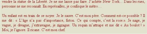 | Nu ajung niciodata la tine acasa probabil ca adorm pe drum Si ma trezesc in alta parte Ca si cum as incepe alt vis As putea chiar sa am impresia Ca esti langa mine Daca zapada nu ar fi rosie Si noi goi printre fulgii calzi Sunt o visatoare si te pierd in fiecare zi Si nu-ti pot spune sa incui camera Dupa ce adormim Pentru ca de fiecare data cand te vad tac Cred ca e un exces de senzatii Care n-au loc in cuvant si il blocheaza |