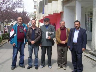 | "Caietele silvane" prezente la Jibou D.S. Colectivul de redactie al revistei de cultura a Salajului, �Caiete Silvane", revista editata de Centrul Culturii Traditionale, sub egida Consiliului Judetean Salaj, a Primariei si Consiliului Local Zalau, s-a aflat la Casa de Cultura Oraseneasca din Jibou, la o intalnire de prezentare a revistei, in compania oamenilor de cultura, a cadrelor didactice si a elevilor din oras. De la dreapta spre stanga: Daniel Sauca, redactor-sef Viorel Muresan, cel mai mare haijin din Romania, publicat de Pasager Viorel Tautan, un poet pensionar Daniel Hoblea, tehnoredactor Gyorfi-Deak Gyorgy artist origami, prozator SF, traducator |