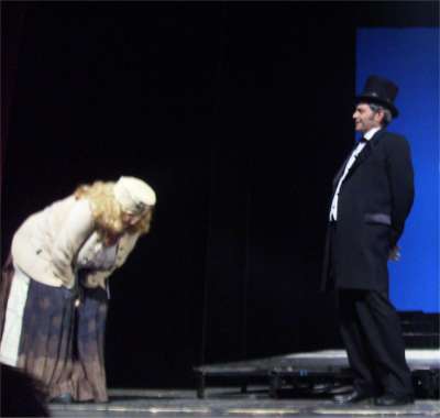 | Un happy-end in care toate personajele canta si danseaza. Decorul discret, realizat de Klara & Eliza Labancz pune in prim-plan jocul actorilor, piesa de rezistenta fiind insa, pianul din coltul drept al scenei. Punctul de intensitate al piesei il reprezinta momentele muzicale oferite de actori care reusesc cu naturalete sa-si dezvaluie �calitatile� vocale. Si, totusi, textul este exceptional; recipile sunt construite din clisee lamentabile, din opozitii amuzante de cuvinte: �Hai sa te strang la piept, colea� � Jacques Frochard, �Hercule este toata familia mea� (Martin), (oita vs. fiinta onesta), rostite intr-un mod nonsalant prin intensificarea comicului. Laudam competenta actorilor: Romanita Ionescu si Oana Bineata, care reusesc sa-si insuseasca rolul celor doua orfeline inocente si delicate: �Pentru sora mea ma sacrific,/ Si-mi curg lacrimi pic, pic, pic�. Adrian Andone joaca excelent rolul unui biet tocilar schiop (Pierre Frochard), ce se indragosteste de |
