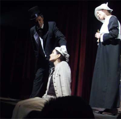 Din clipa aceea descoperi valentele teatrului care ofera mai mult decat ecranul televizorului: aduce stralucirea adevarata la doi pasi de tine, te invaluie. De altfel jocul de lumini este inca o data la mare inaltime. Din putine elemente ale decorului si din mult talent in decuparea de lumina si umbra se deschide un spatiu de profunzime care profileaza personajele ca pe un cer senin, tot asa cum simultan se face un recurs la filmele mute, fieful melodramelor precum aceasta. Cele doua orfeline sunt jucate exceptional de catre Oana Bineata si Romanita Ionescu. Foarte bine distribuite si conduse de regizorul George Ivascu! Oana Bineata vine dupa incantatorul ei rol de Julieta, acum punand accent pe latura umoristica a jocului ei. La fel de dinamica, spiridus, face un cuplu de efect cu "sora" ei mai inalta pentru ca acelasi gen de contrast sa fie un deliciu alaturi de Roger, jucat crescendo de catre Cosmin Radescu. Dar explozia de stralucire ii apartine Romanitei Ionescu! Orfelina cea 'oarba' are o suita de gesturi comice, o mimica pe care o urmaresti cu sufletul la gura, cand oricum nu stii unde sa te uiti mai intai, fiecare actor |