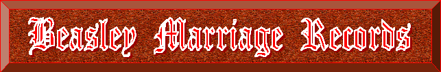 BEASLEY, Thomas Christopher 12 Dec 1844 Jemimah Allen Joannah 20 Nov 1855 Michael Shockley Richard 16 May 1866 Lucy F. Cochran William Robert 28 Jul 1897 Lallie Louise Easter James Ellis 24 Dec 1902 Ella Belle Easter