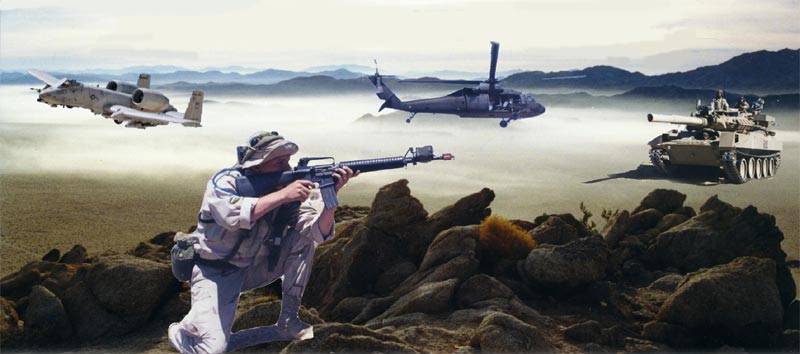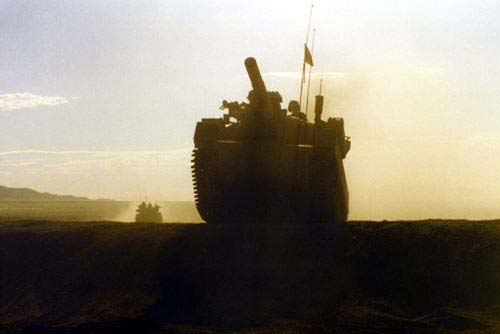 fighting vehicles on the National Training Center battle field. The
