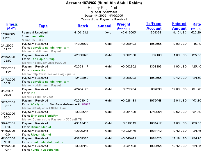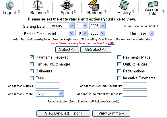 Step 3 : Please specify what kind of transaction history you want to view. Click on View Detailed History. Your page might look like below.