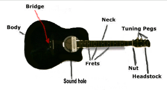 Frets: Vertical metal wires which sit vertically on the guitar neck.