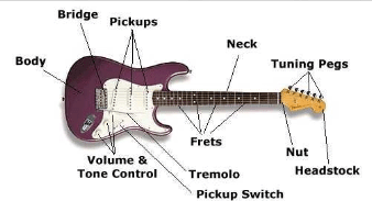 Tremolo: (aka: Whammy bar) The tremolo is a bar connected to the bride of the guitar. By moving the tremolo bar up or down, you can move the bridge, thus changing the pitch.
