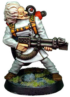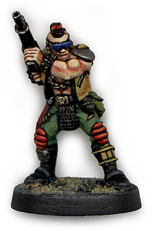 This is "Jason" another one of the Slag Dogs, He's almost a straight paint up exept for his gun which was built up from the front of an Escher autopistol. Oh yeah the figure is a "Savage with Gun" from the Grenadier - Future Warriors range.