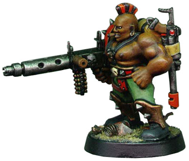This here is "Pyro" one of the gangs specialists. He started off a juve and lucked out on the tech table. The mini is a savage with gun from the Future Warriors range.