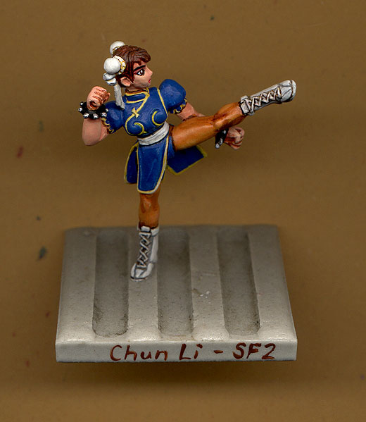 Something a little bigger here. This is a figure of Chun Li from Streetfighter 2 the figure is resin and you can probably tell is a bit bigger than the reguar minis I would say it's 1/24 scale.
