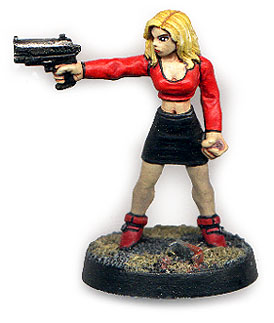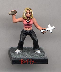 Dah Dah Dah dada da dahdah. Go Buffy. This is an unofficial mini of the Buftser from GZG available in Oz from Eureka. The likeness is quite good BUT and I do mean BUT the body is very poorly done. I actually cut in half and added her stomach with greenstuff.