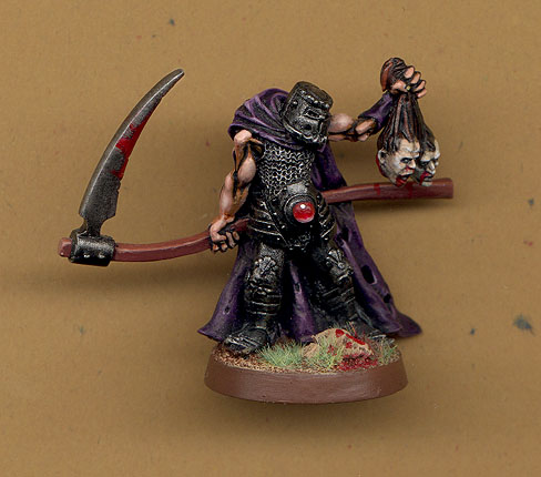The latest addition to our group is a cleric of Death (whatever he's called in the Realms). We all call him Death, cause well look at him. The mini is a Heartbreaker Chaz Eliot mini.
