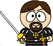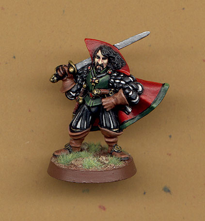 Foremost is the most reknowned Lord Fabius Hotspur of Waterdeep. A swashbuckler, dragon slayer, businessman, tavern owner, swordsman and rogue. The figure is a GW Warhammer Quest knoble.