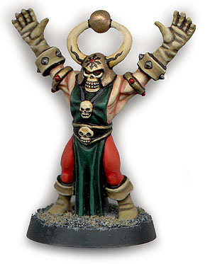 This is the Chaos Scorceror from the old HeroQuest game by Milton Bradley. Beleive it or not that's a cheap plastic mini. I always liked him since he looks kinda like Skelator. |