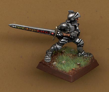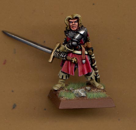 This grim faced chap is a High Elf Lord, he's from the older range of GW elves Pre-Warhammer 2nd Ed. I was particurlarly happy about the checkered pants when I did them. |