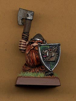 A trio of Dwarves. The on the left is Flint Fireforge from the Ral Partha Dragonlance box set now OOP. The middle and right dwarves are GW Dwarf Greatbeards. |
