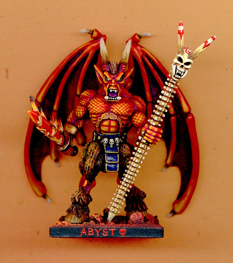 This happy chappy is ABYST prince among demons. He's a very hefty mini from Reaper minis, who kindly provided him for the Visions in Colour painting exhibition. I'll put the link for this soon. The himself is fabulous (although possibly cursed - everyone that painted him had something go wrong. Me I knocked him off the table and broke off his sword and bent hics a bit.) |