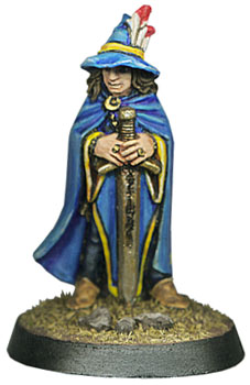 The young wizard with the magic sword is an old Julie Guthrie - Grenadier Fantasy Personality. I'm particularly proud of how the blue clothing turned out since it was one of the first times I'd mixed inks into the paint. |