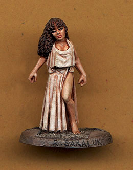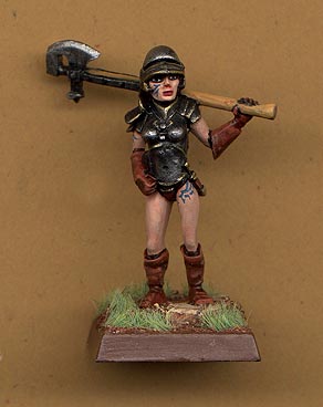 This is "Melonial" Turok's girlfriend. She's a theif that on one occasion was with the enemy and later stole most of our gear and nearly killed Braxton the troll. Anyway Turok likes her, If your familiar with the Lupin series ie: Castle of Cagliostro you'll get the Wolf and Fujico relationship. Anyway the mini is from Shadowforge a local Sydney company. |