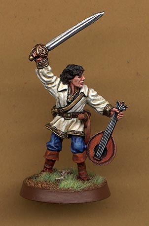 This is Frangari the human trobadour of the Raiders. The mini is from Reaper minsi. Note the whip on his hip, mind you it's hard to see at this angle. |