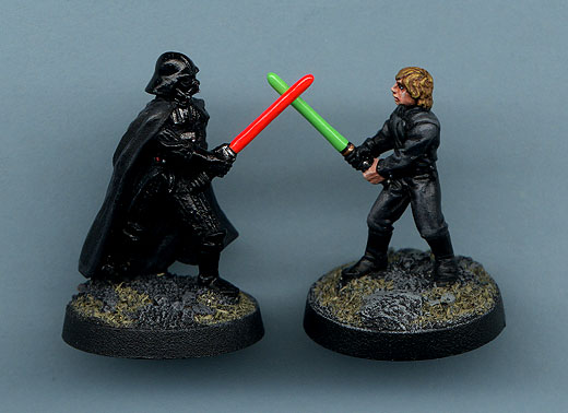 Nothing like a little family dispute. These are a straight paint upof the old Julie Guthrie Star Wars minis by West End Games. Hope you like my SFX.