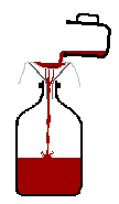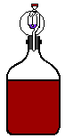 Secondary fermentation Red After primary fermentation and racking the wine is ready for secondary fermentation. This process will continue for a longer period of time but not as vigorously as primary fermentation. Fill your carboy almost to the top, when no more foam is being formed . Place a bung and airlock on top of the carboy. White When fermenting clear juice, there's no primary fermentation. The juice is placed in the carboy from the start. You'll only fill the carboy for 4/5 part. Fill another bottle with juice so you'll be able to fill up the head space later on. Add the yeast starter and get both bottles fermenting. Put a piece of wadding in the neck of the bottles. Foam will form on top of the must due to rising bubbles. That's why you only filled the carboy partially. The amount of foam depends on the ingredients used and fermentation conditions. When fermentation speeds up put a fermentation lock in place of the wadding. When fermentation slows down (you can tell by the bubbling rate of the airlock or by hydrometer readings) it's time to add the rest of the total amount of sugar required if you want to get a higher alcohol content. The SG should be about 1010 now. It's best to add the sugar in several steps. Take a hydrometer reading before and after each sugar addition to be able to calculate the alcohol content when the wine is finished. Siphon off some wine, dissolve the sugar in it and siphon back. Notice that dissolved sugar needs some bottle space. |