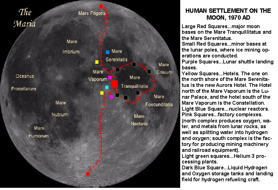 1999 AD--Construction begins on a fourth major base on the moon. It will be located on the south shore of the Mare Imbrium. Additional industrial complexes will be built there as well (mining and agriculture).