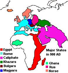 c. 850 AD--Driven by the Turkic Pechenegs, the Magyars (a Finno-Ugrian nomadic tribe living in the region north and east of the Black Sea and allied to the Khazars) migrate west. They reach the plains east of the Roman defenses on the Vistula by 860 AD. These lands are inhabited by a Slavic tribe called the Polanie, who call the area Polska. The Magyars settle among the Polanie and establish themselves as a ruling class in the region. Also at about this time, Roman missionaries convert the King of Ghana to Christianity. Ghana thus becomes the first Christian state outside of Rome.