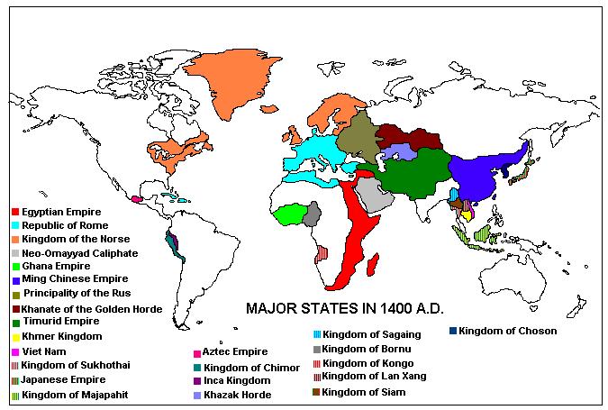 1500-1600 AD--In Ming China, a number of factors are at work which in the OTL eventually led to the decline and fall of the Empire and it’s conquest by the Manchu in the next century. First, climatic changes, with falling temperatures and greater rainfall in some areas, caused harvests to fail and rivers to overflow their banks. These same climatic changes also affected the Mongol and Jurchen nomads to the north, prodding them to unite and raid into China. Large areas of the north were virtually depopulated as peasants, fleeing from famine and raiders, fled to the south. These migrations, in turn, caused disruptions and food shortages in the southern regions as well. Another factor which has caused problems is that the Ming policy of trade and contact with foreign nations has resulted in a large influx of gold and silver into China. While this has had many good aspects and has increased the wealth of the imperial government, it has also lead to inflation as Egyptian gold and Roman silver have poured into the economy. Fortunately, through their trade contacts, the Ming Emperors (or rather their Prime Ministers, since most of the Emperors since the Yongle Emperor have preferred to live in seclusion in the Forbidden City, engaging in the hedonistic pursuit of pleasure while leaving the actual government of China to the Ministers), have been able to import food supplies (Egypt has, for example, over the past century become a large producer of rice for export to China) to ease the suffering of the people. Due to the much higher trade profits the Ming are receiving in the ATL, they have been able to maintain their large and well disciplined army, so banditry in the countryside is well controlled. They have also been able to forego many of the burdensome taxes that, when combined with the other woes besetting the empire, eventually led to the peasant revolts which toppled the Ming regime in the OTL. And so, when the next century dawns, the Ming will be in a much better position to withstand the Manchu onslaught.