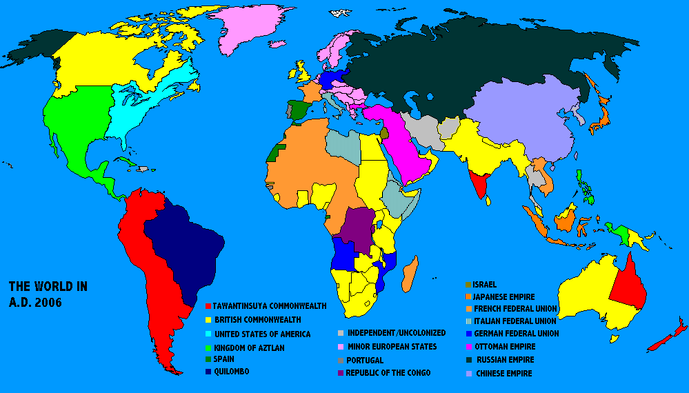 A.D. 1967--Emperor Xuantong of China dies childless. He is succeeded by Crown Prince Yuyan, who reigns as the Emperor Huangqing. King Ferdinand II of Aztlan dies. He is succeeded by his grandson, Crown Prince Carlos Felipe, who reigns as King Charles I. In India, nearly 20 years of fighting have mutually exhausted the British authorities and the Congress Party revolutionaries. Tentative peace feelers put out by the British government are accepted by the Congress Party, and negotiations produce an agreement similar to that made by France with the Indochinese rebels several years earlier (and, incidentally, by Britain with the Irish nationalists back in the 1920s). India is granted Dominion status, and will be represented in the Imperial Parliament in London, with local affairs to be the domain of an Indian Parliament which will be elected by the people of India and will sit in Delhi. Most of Britain’s other remaining colonies will be granted similar status within the next decade, transforming the British Empire into the British Commonwealth. I.S.E.A. launches exploratory probes to the moon and Mars which transmit back the first reconnaissance photographs of these extra-terrestrial bodies.