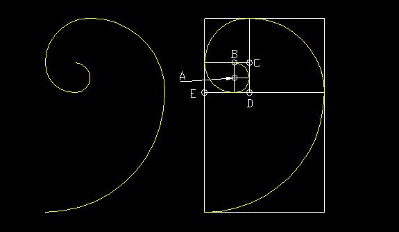 First, draw two squares with side length of 1 next to each other. Draw a circle centered at A and radius 1. Draw a square with lenth 2, and at point B, draw a circle with radius 2. Then draw a square with side 3,5,8,13 and so on. See the pattern? They're just a bunch of Fibonacci numbers. As you continue the pattern, your rectangle will get closer and closer to the real golden rectangle.