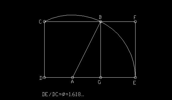 In the figure, DE divided GE equals Phi. BG/BF also equals Phi. Rectangle BFGE is exactly proportional to CBGD.