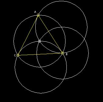 Start with a circle O. Choose any random point P on circle O. From P construct a circle with radius PO. The circle you just made will intersect circle O at A and B. Construct a circle centered at B. Circle B will intersect circle O at P2. Construct a circle centered at P2. Circle P2 intersects circle O at C. Points A,B,C are the points of the triangle.