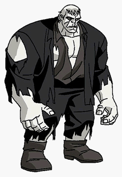 en el que empez� su segunda vida. Desde entonces Grundy ha estado vagando por el mundo tratando de llevar una vida como criminal, con �xitos moderados, casi siempre siendo detenido por alg�n h�roe o por su propia estupidez. Extremadamente fuerte, pero no muy inteligente, Grundy es otro de los miembros ocasionales de la Liga de la Injusticia, siendo toda la fuerza y el poder f�sico detr�s del grupo. |