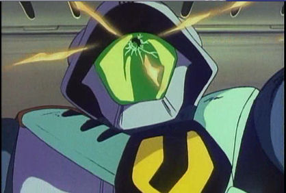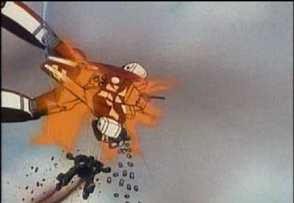 Man får se en närbild när Rick skjuter en Zentradi i huvudet.
