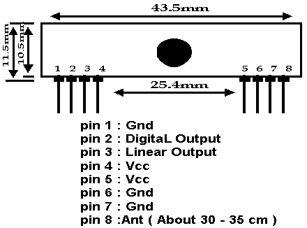 receptor de RF a 433.92Mhz, tiene una sensibilidad de 3uV.