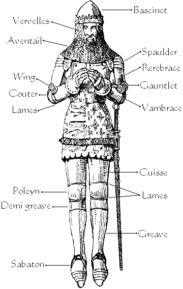 Armour is the most enduring symbol of the medieval knight below are name of the various pieces of armour used during the middle ages: