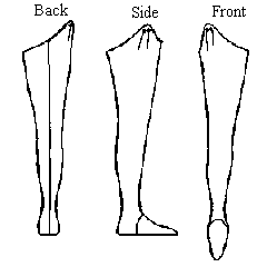 ![]() It seems that during the Middle Ages throughout Western Europe the concept of �trousers� had not been in style or perhaps even thought of quite yet, instead men (and quite possibly women) wore a pair of voluminous knickers with chausses tied to them. Chausses are separate stocking-like legs that are attached to the braies by points (or buttoned perhaps) and are cut high so that the braies can be neatly tucked in. Chausses were made of linen or wool, which came in an array of different colors and were often worn parti-colored. They were cut �on the bias� to give them greater elasticity, some stopped right at the ankle, but most seem to have had feet attached, and some yet seem to have a leather sole sewn to the bottom of the feet so shoes were not needed. To give the chausses more support garters made of supple leather, linen, or wool (often embroiled) were buckled or tied just below the knee.