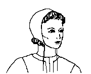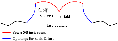 Serving a variety of practical functions during the Middle Ages, coifs were worn by all classes of society. It kept the sun off your head, the sweat or hair out of your eyes, and it also helped retain body heat. Worn mostly by men and boys from the 12th century on, it was a close fitting bonnet that didn�t cover the head entirely. It covered right behind the hair line of the forehead, just enough for a tuff of hair to stick out in the front. It covered down to the nape of the neck, the sides covering the ears, and it tapered down into ties that were secured under the chin. It seems that in earlier times it was constructed of two pieces of material with a central seam running from the front of the head to the nape of the neck. Later they were constructed using three panels of material possibly for a closer fit or perhaps to save on material. Although there have been no surviving examples of coifs found as of yet, I am persuaded to think that they were made of linen or wool. They are usually always being depicted in illumination as being white. ![]()