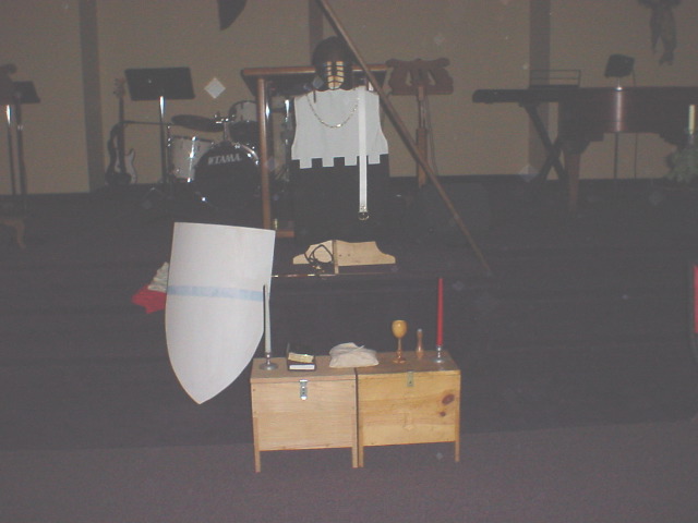 Sir Allister's Armour and accoutrement neatly placed upon the altar of the chapel.
