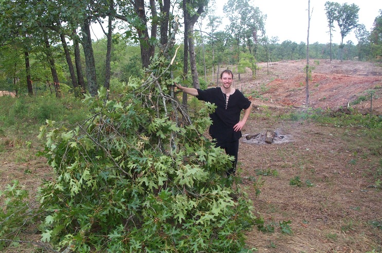 Sir Hamish stands next to his makeshift shelter.