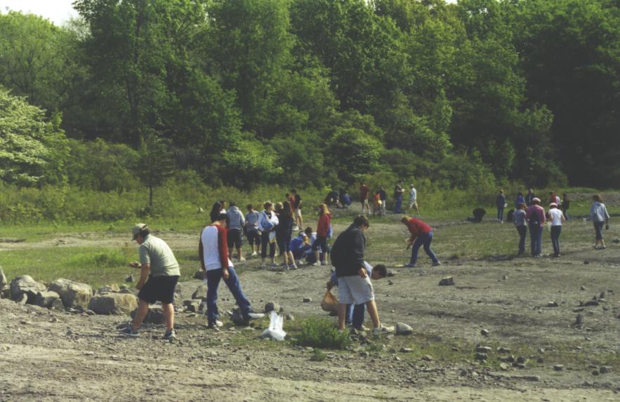 | The fossils at the Penn Dixie Quarry are located in layers and layers of shale. The shale layers are on a tilt and located underneath the shale beds is a layer of limestone. The layers are tilted due to earth forces such as glaciers. Shown in the picure below the different layers of shale and the layer of limestone. |