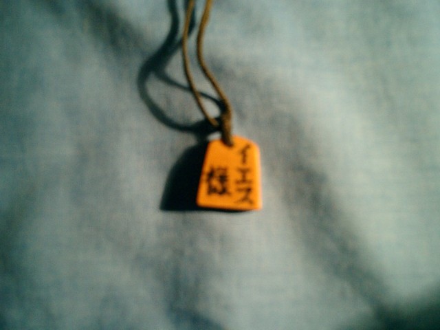 This is the back of my homemade Shogi Pendant. The kanji says "Jesus" (Iesu sama).