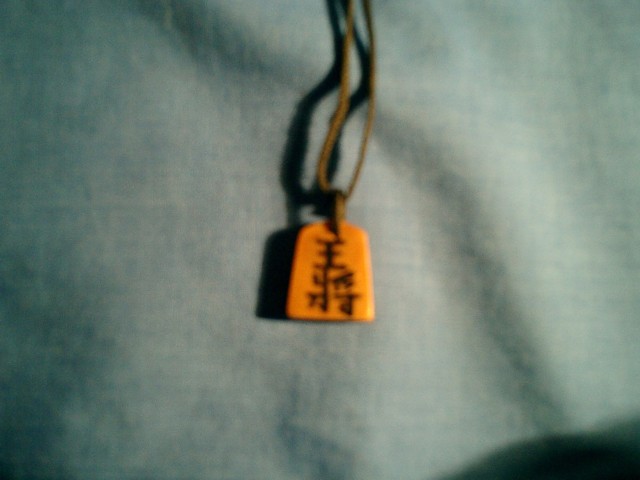 This is the front of my homemade Shogi Pendant. The kanji says "King" (O Sho)