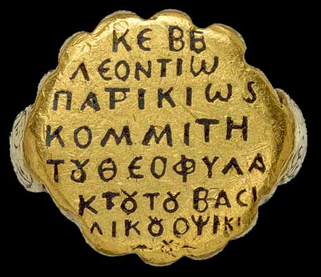 Anillo que perteneció al emperador Leoncio (695-698) quien se sublevó contra Justiniano II enviándolo al exilio en Querson. Al volver Justiniano II al trono en 705 se desquitó en el Hipódromo martirizándolo hasta la muerte, al igual que a Tiberio II (698-705). |