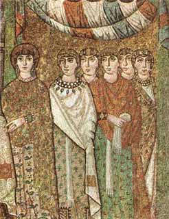 574 Justino II pierde la razón definitivamente, y tiene que nombrar a Tiberio, jefe de la guardia palatina (comes excubitorum), co-emperador, quién comparte el gobierno con Sofía, la esposa de Justino II y sobrina de Teodora.