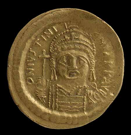 Moneda de oro de Justiniano. |