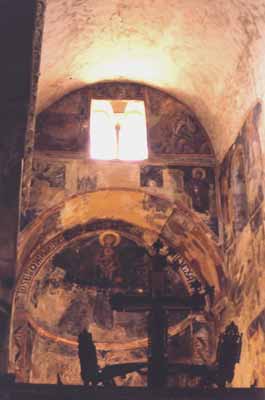 En el ábside del diakonikon se encuentran los santos Cosme y Damián. El conjunto de los frescos más antiguos se completa, entre otros motivos, con escenas de la vida de la Virgen y una Preparación del Trono. |