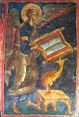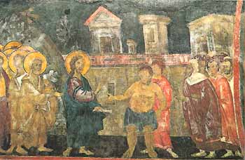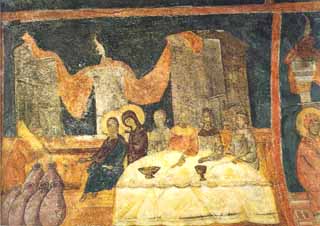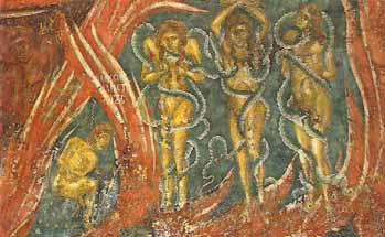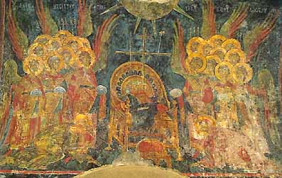 El diseño y la expresividad de las figuras, la composición de los personajes de las escenas, los colores vivos y la naturalidad en la pincelada revelan una técnica muy superior a la anterior. Donde mejor podemos apreciar los frescos de este periodo es en el nártex, cuyos muros y bóveda se cubren de escenas que relatan la Segunda Venida de Cristo a la Tierra. |