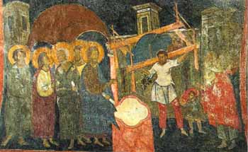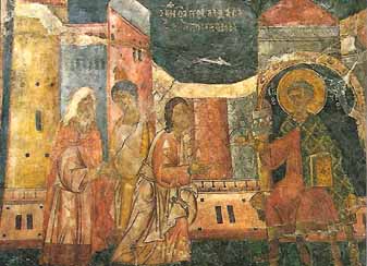 También a esta etapa pertenecen los frescos conservados en la nave norte, dedicada en su parte oriental a escenas de la vida y martirio de San Demetrio, cuyo retrato encontramos también en el ábside. |