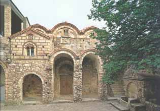Hacia principios del siglo XV, el obispo Mateo levantó todo el tejado y añadió una galería, donde incluyó una dependencia especial para las mujeres, y una cúpula que se apoya sobre cuatro pilares sostenidos por las columnas de las naves laterales, adaptándola así al diseño de las más importantes iglesias de ese momento en Mistra, la Hodiguitria y la Períbleptos. Esta ampliación se hace evidente tanto en el exterior de la iglesia como en el interior, ya que, por un lado, la utilización de los materiales de construcción es totalmente distinta a la antigua, y, por otro, el programa primigenio de frescos está incompleto, pudiéndose distinguir en la decoración actual distintas épocas de realización. |